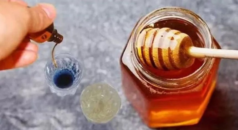 Потребуется одна чайная ложка пчелопродукта, один стакан воды и пять капель пятипроцентного раствора йода. Воду нагревают, переливают в стакан, добавляют мед и ждут его полного растворения. Затем подмешивают йод. Если препарат растворился без следа или появился легкий оранжевый оттенок, выбор был сделан в пользу качественного товара.