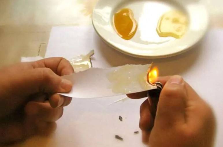 К небольшому количеству меда подносят зажженную спичку. Качественный пчелопродукт сначала расплавится, а потом зашипит. Или наносят на лист бумаги каплю нектара, затем его поджигают. Хорошо, если станет жидким, не сгорит и не поменяет цвет. Низкокачественный товар приобретет запах жженого сахара.