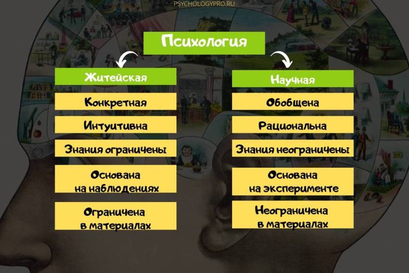 - База житейской психологии — обыденный опыт, научной — эксперименты.