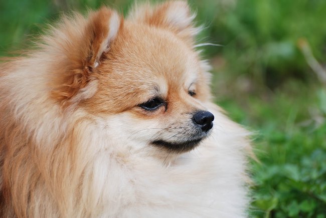 Померанец отличается маленьким размером ушек, которые довольно широко расставлены. А вот стоп-переход ото лба к морде – выражен довольно четко.