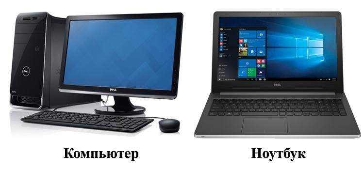 Настольный компьютер остается в офисе или дома и требует подключения компьютерного терминала к внешнему монитору, клавиатуре и мыши; в то время как ноутбук имеет встроенные компоненты и поэтому легко транспортируется как одно целое устройство, которое можно использовать в большинстве условий.