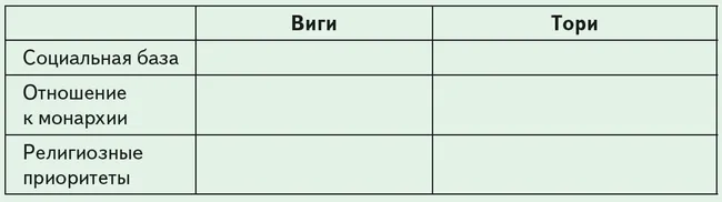 5. Дайте сравнительную характеристику партий вигов и тори (систематизируйте информацию в тетради в виде таблицы).