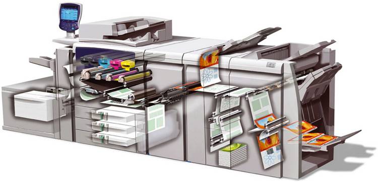 Промышленные цифровые печатные машины отличаются от принтеров форматом запечатываемого материала и скоростью печати, к промышленным относят устройства, способные выводить от 70 страниц в минуту.