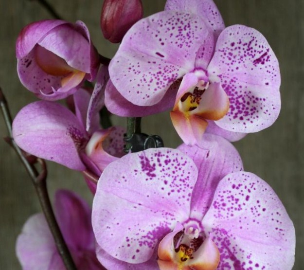 Вазу с цветами не ставьте рядом с вазой, наполненной фруктами. Спелые фрукты выделяют газ этилен, который сокращает срок жизни цветков орхидеи. Увядшие цветки имеют тоже свойство — выделять газ. Поэтому их следует сразу же убирать с цветоноса и, опавшие, со стола.