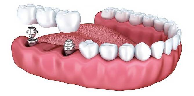 К несъемным конструкциям относятся коронки, мосты и имплантаты. Коронки используются в случае необходимости восстановления одного зуба, мосты применяются при утрате нескольких единиц и представляют собой три и более зубные коронки, объединенные в общую систему. Для установки данных видов протезов необходимо наличие живых зубов, которые обтачиваются и служат опорой конструкции.