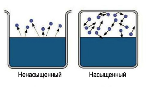 Само слово «насыщенный» несет определенную информацию, трудно насытить большую область пространства. Значит, чтобы получить насыщенный пар, надо ограничить пространство, в котором находится жидкость. Температура при этом должна быть меньше критической для данного вещества. Теперь испарившиеся молекулы остаются в пространстве, где находится жидкость. Сначала большинство переходов молекул будет происходить из жидкости, при этом плотность пара будет повышаться. Это в свою очередь вызовет большее число обратных переходов молекул в жидкость, что увеличит скорость процесса конденсации.