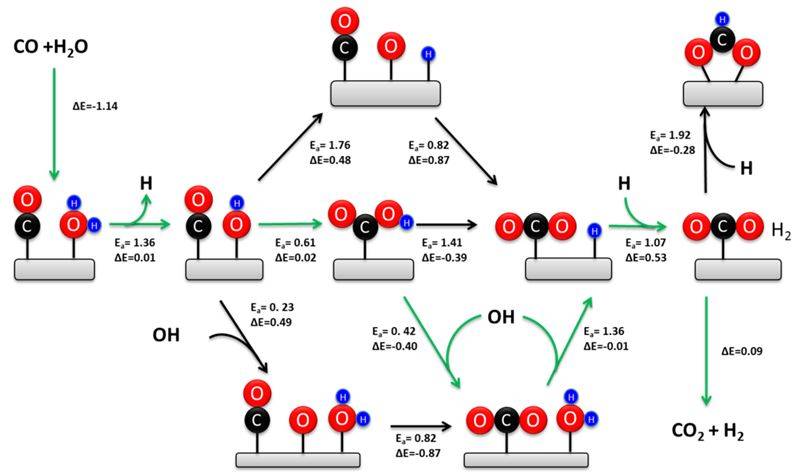 Рисунок 1: Ассоциативный и окислительно-восстановительный механизм сдвига водяного газа.