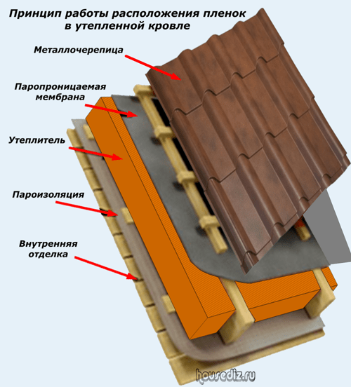 Защита утеплителя кровли от намокания с использованием гидроизоляционной мембраны и пароизоляции