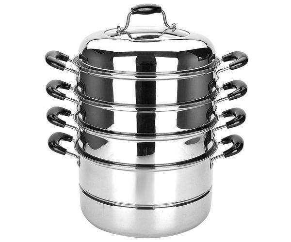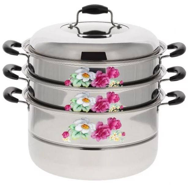 Несколько дороже оказываются модели из нержавейки, которая обеспечивает кастрюлям более высокое качество и продлевает им срок эксплуатации. Такие мантоварки очень долго не теряют внешний вид. Здесь стоит опираться только на свои предпочтения и материальные возможности, так как на вкусовые качества блюд материал посуды не влияет.