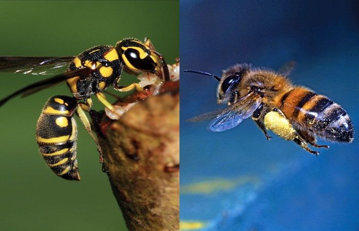 Пчелы и осы имеют разную структуру тела и ног. У первых волосатое округлое толстенькое брюшко, ноги тоже широкие, покрытые ворсинками, помогающими собирать цветочную пыльцу. Осы, напротив, имеют гладкие тела и ноги, поскольку в основном являются хищниками; их тела идеально адаптированы к охоте на других насекомых — аэродинамичные, гибкие, суженые в талии для внезапного реактивного нападения и захватывания жертвы. Они манёвренны и быстры, тогда как пчёлы — медлительны и гораздо более спокойны, если их не тревожить, ведь их жизнь — это больше полет от цветка к цветку, чем бой. Они никогда не ужалят при сборе нектара и пыльцы, но будут агрессивны в обороне, когда их спровоцировали. Пчелы на самом деле являются очень нежными существами, если оставить их в покое.