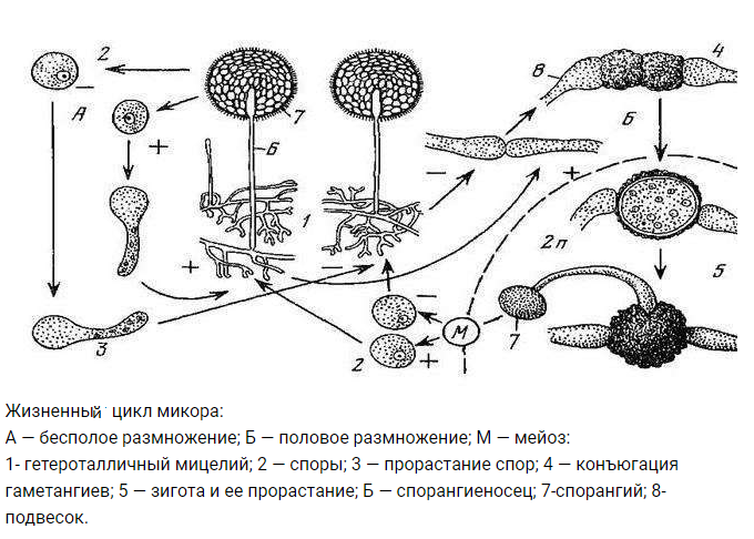 | Спорангии | Специальные структуры, в которых образуются споры – репродуктивные клетки мукора. Спорангии располагаются на нитях грибницы и защищены от внешней среды. |