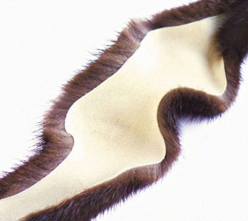 4. Цвет мездры у неокрашенных хорошо выделанных шкурок светлый — молочно-белый или оттенка слоновой кости. Со временем он приобретает желтоватый оттенок. Если шкурка окрашена, то, скорее всего, и мездра будет такого же цвета.