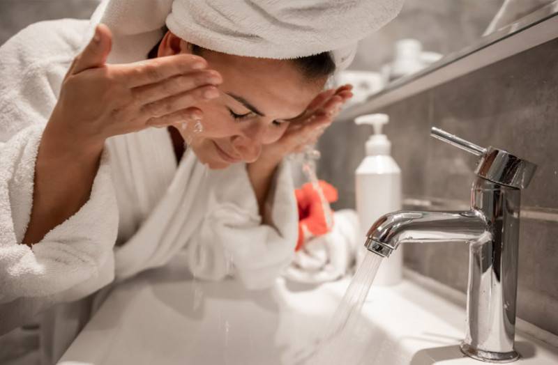 - Начинать всегда стоит с хорошего очищения. Для начала удалите с помощью мицеллярной воды, молочка или другого средства остатки макияжа. Затем умойтесь с пенкой, гелем или специальным мылом для лица. Смывайте средство теплой водой, чтобы подготовить кожу к следующему этапу.