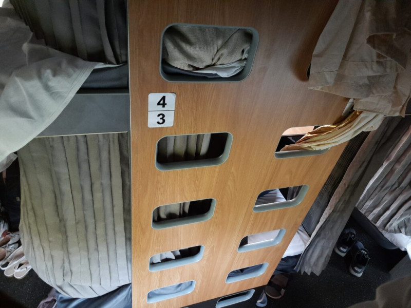 - Каждая ниша имеет свою собственную полку с матрасом, подушкой и постельным бельем.