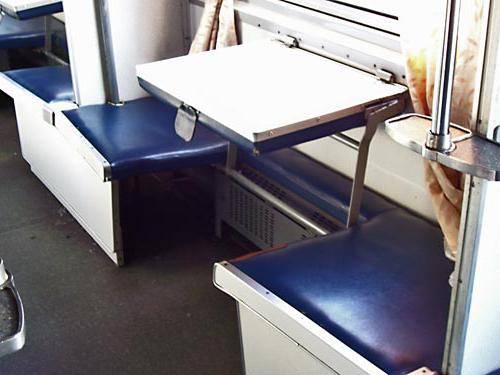 Здесь – также, как и в двухвагонных плацкартных сцепах от Тверского вагоностроительного завода, – светильники установлены возле каждого места. Еще из «фишек» – столик для пассажиров верхних полок. Поначалу его критиковали – мол, небезопасно. Но со временем распробовали. Столик сделан как корыто с очень высокими бортами, так что ничего не прольется не выпадает.