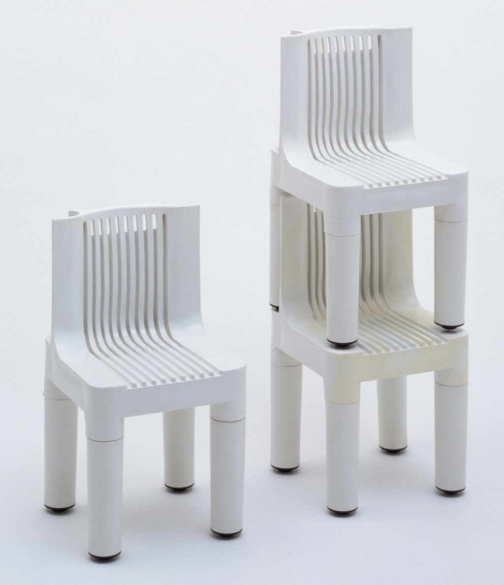 Пожалуй, любимым предметом для экспериментов среди промышленных дизайнеров стал стул. В 1950-е и 1960-е было создано несколько необычных моделей, которые впоследствии приобрели статус культовых. В 1964 году американская фирма Kartell продемонстрировала первый в мире стул, сделанный целиком из пластика, — K1340, придуманный для детей. Три года спустя та же фирма представила модель Universale — стулья были доступны в нескольких цветах, и их можно было легко поставить один на другой, чтобы они не занимали много места в помещении. Карен Кнорр и братья Имз ввели моду на плавные формы, повторяющие изгибы тела. Вернер Пантон довел эту идею до логического завершения, создав в 1967 году свой знаменитый стул Panton — легкий и водонепроницаемый, пригодный для использования как на улице, так и в интерьере. Вдоволь наигравшись с минималистичными силуэтами, дизайнеры перешли к более экстравагантным решениям. Например, Гаэтано Пеше в конце 1960-х разработал линейку мягкой мебели UP, выполненную из полиуретановой пены. Кресла и пуфики выглядели вздутыми и громко заявляли о своей причастности к поп-арту. Примерно в то же время Ээро Аарнио выпустил сферообразные модели Ball, Bubble и Pastil, а Квазар Кхан представил коллекцию надувной мебели.