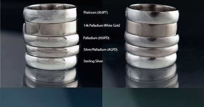 По сравнению с серебром изделие из платины имеет более светлый оттенок.