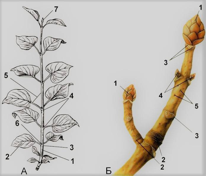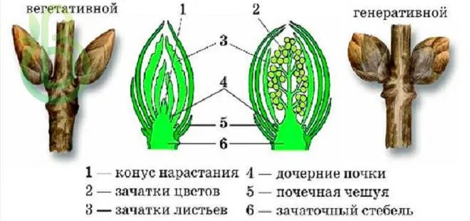2 – Почки, обеспечивают развитие и рост побега.