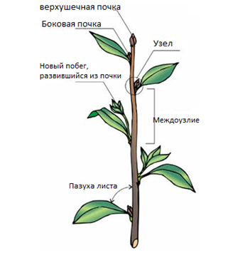 Узлом называют часть побега, из которой выходят один или несколько листьев, находятся боковые почки или образуются придаточные корни.
