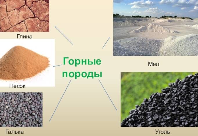 Горная порода – рыхлое или плотное образование, сложившееся в результате тектонических и геологических процессов. Примеры горной породы: гранит, уголь, глина, мел, песок.