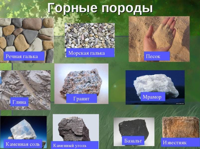 Горная порода – рыхлое или плотное образование, сложившееся в результате тектонических и геологических процессов. Примеры горной породы: гранит, уголь, глина, мел, песок.