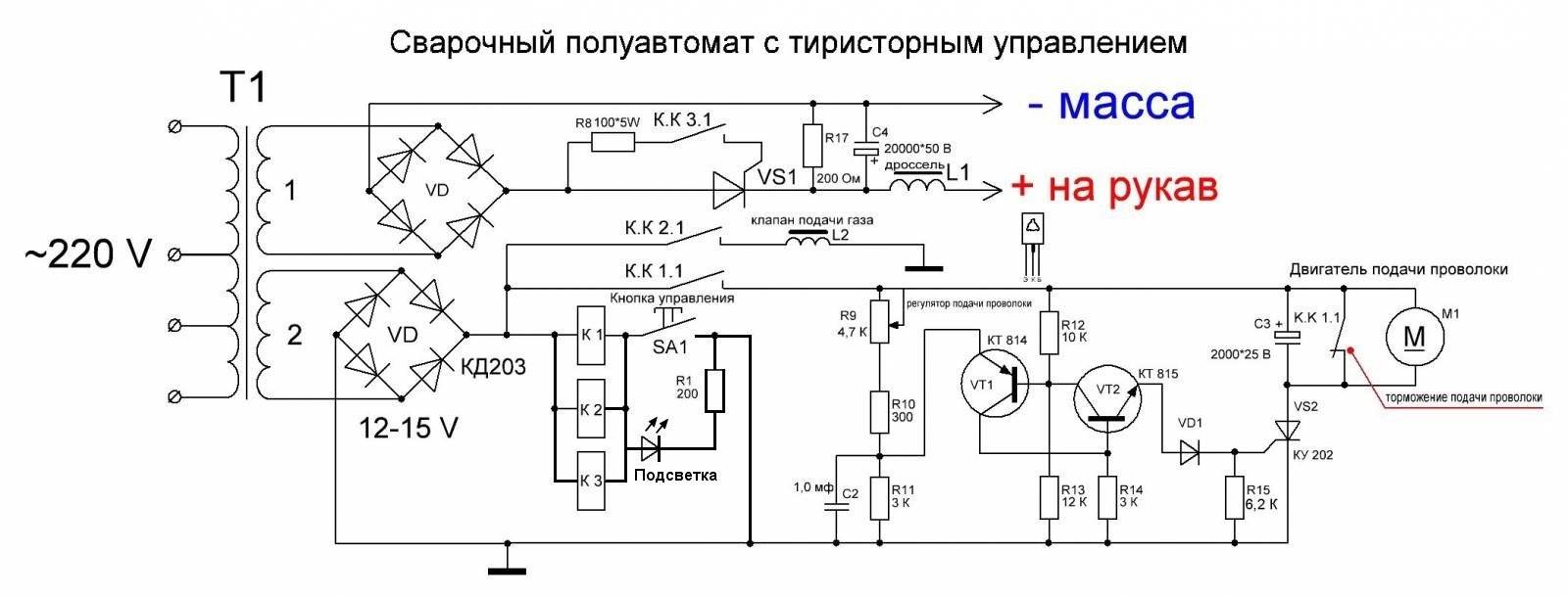 Схема сварочного аппарата с тиристорным управлением.