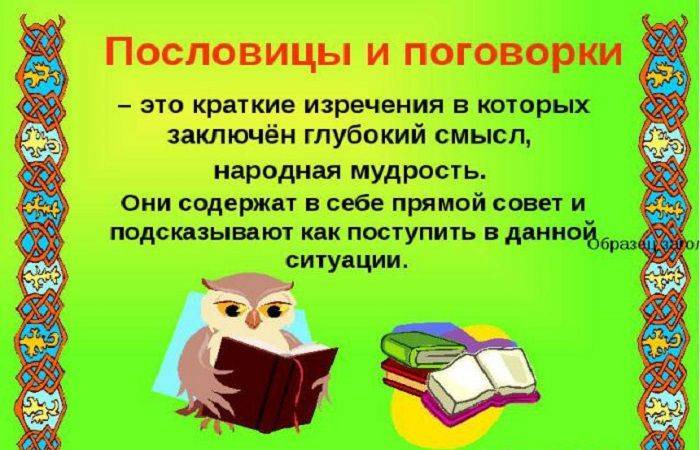 По определению, которое дает Большой энциклопедический словарь, пословицы — афористически сжатые, образные, грамматически и логически законченные изречения, обладающие поучительным смыслом, и в ритмической форме. Они провозглашают основополагающие истины, разные жизненные явления в обобщенном виде. Кто-то их называет формулами жизни, и это не случайно, ведь в них ответы на многие житейские вопросы, предупреждения о последствиях некоторых действий, советы.
