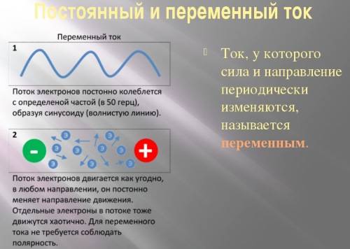 Физический процесс, при котором заряженные частицы движутся упорядоченно (направленно), называется электротоком. Его принято разделять на переменный и постоянный. У первого направление и величина остаются неизменными, а у второго эти характеристики меняются по определенной закономерности.