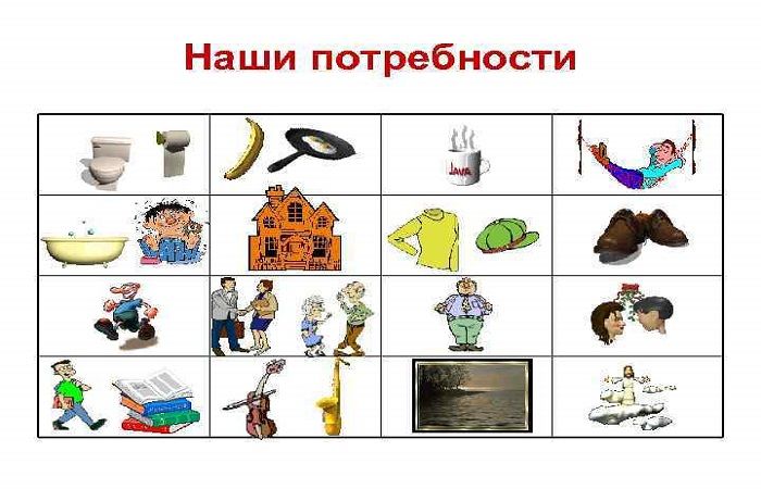 Например, все люди для поддержания своей жизнедеятельности нуждаются в еде. Одни имеют потребность в приобретении макарон и копченого мяса, другие не едят мяса и макароны, а удовлетворяют свою потребность в пище с помощью рисовой каши и яблок.