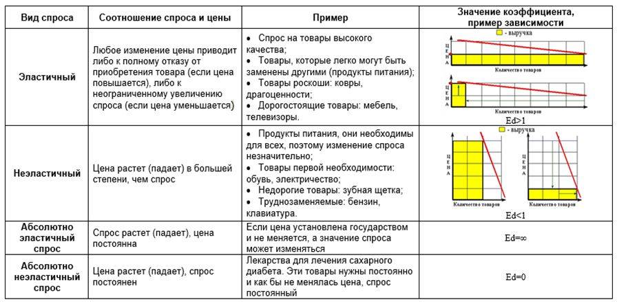 Реакция потребителя на изменение стоимости бывает слабой, нейтральной и сильной.Поэтому эластичность бывает нескольких видов, в зависимости от ответа покупателя на изменение цены: