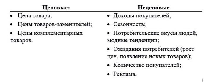 Факторы, влияющие на спрос при стабильной стоимости товара, называются неценовыми детерминантами. К самым важным неценовым детерминантам относятся: