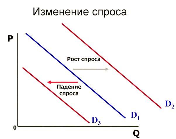 Падение величины спроса вызывает смещение кривой в левую сторону, а повышение – в правую сторону. Изменение положения кривой в одну или другую сторону происходит под влиянием двух видов внешних факторов, при этом цена на товар остается прежней: