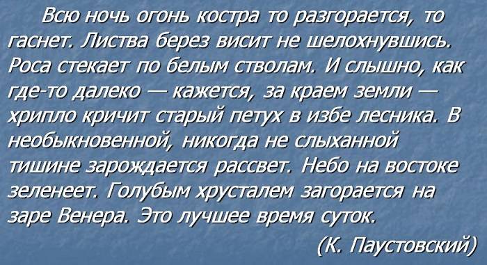 Примеры пейзажа, вы можете найти в произведениях классиков. Например, в рассказе «Судьба человека» автор приводит краткое описание ранней послевоенной весны. Картины, воссозданные им, настолько живы и правдоподобны, что создается впечатление, будто читатель видит их.