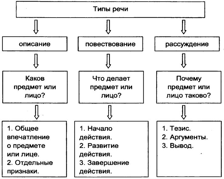 Чтобы научиться правильно определять типы речи, выясним, как и с какой целью изображается предмет, укажем структуру построения текста, основной вопрос, заключенный в нем. Рассмотрим основные типы речи, указав особенности их языкового оформления.