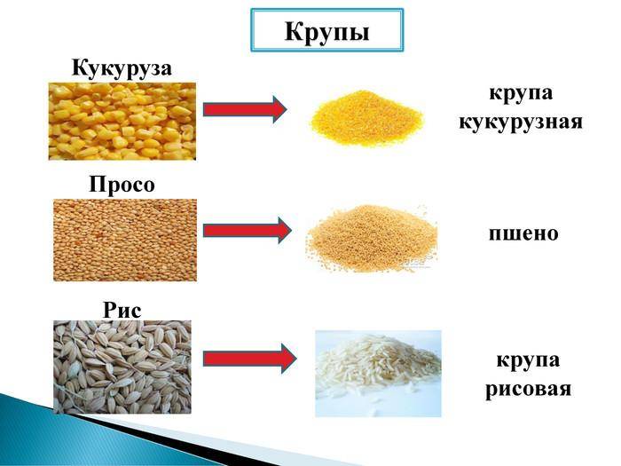 В зависимости от качества обработки зерен проса, различают несколько видов пшенных круп: