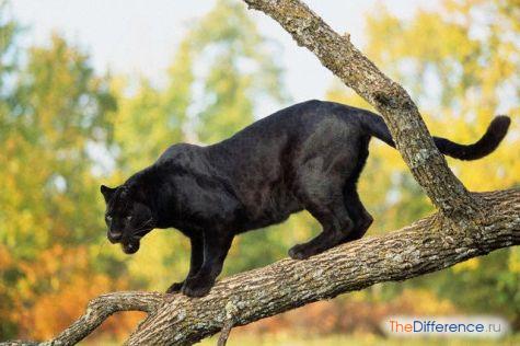 Пантера имеет более крепкое телосложение и больший размер в сравнении с пумой. Они отличаются по окраске — пантера монохромная, обычно черная, в то время как пума может быть оттенков от темно-коричневого до светло-бежевого.