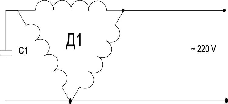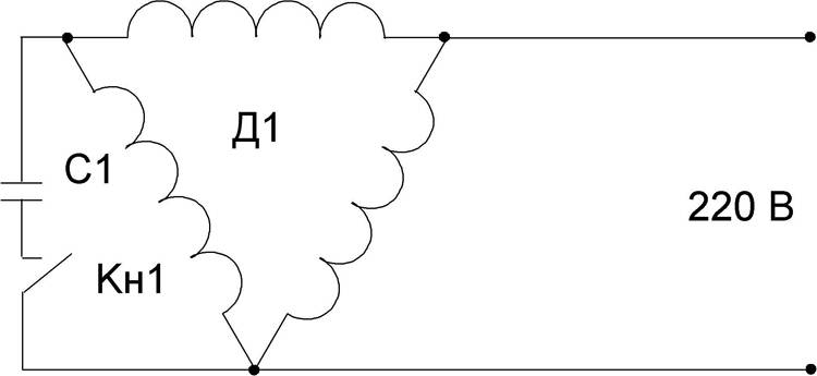 Большее распространение получила схема, которая имеет в сети пусковой конденсатор.