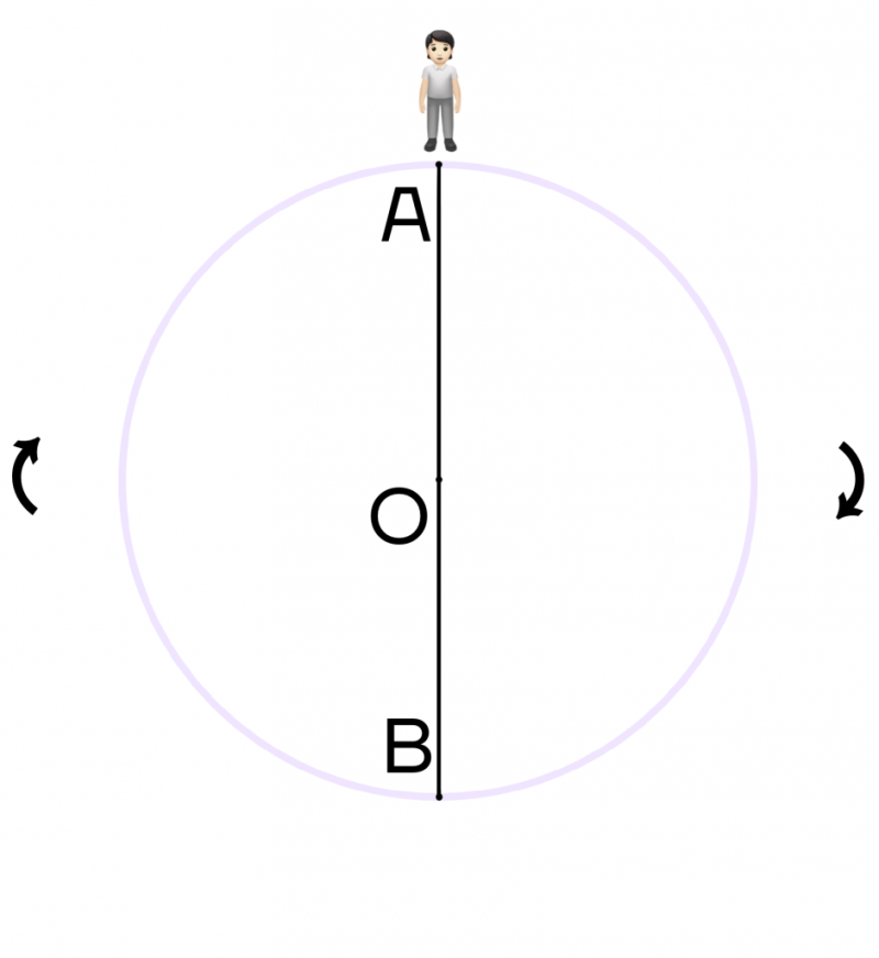 Поэтому если человек будет находиться в точке О и захочет повернуться на 180 градусов, то вместо точки А он будет смотреть на точку В. При повороте на 360 градусов, человек снова будет смотреть на точку А.