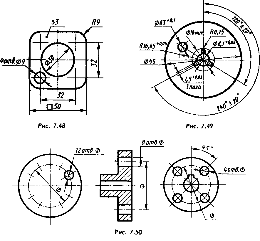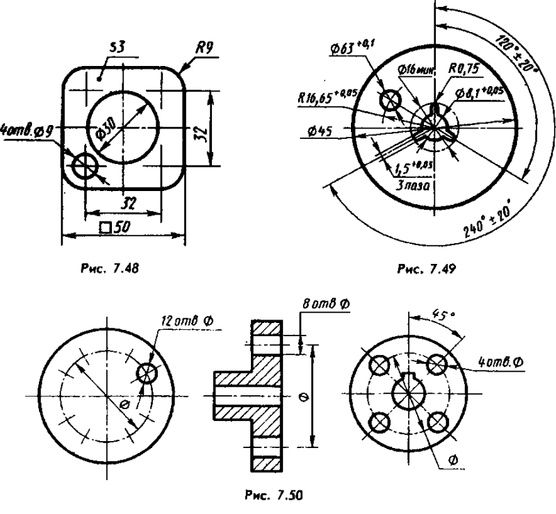 Ниже приведены некоторые примеры использования знаков диаметра и радиуса: