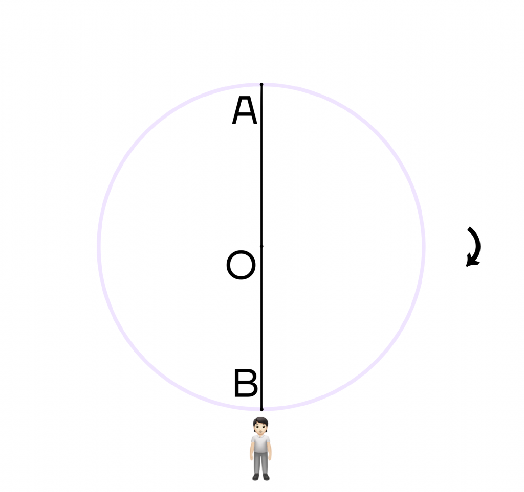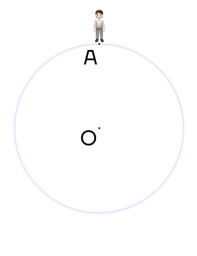 Поэтому если человек будет находиться в точке О и захочет повернуться на 180 градусов, то вместо точки А он будет смотреть на точку В. При повороте на 360 градусов, человек снова будет смотреть на точку А.
