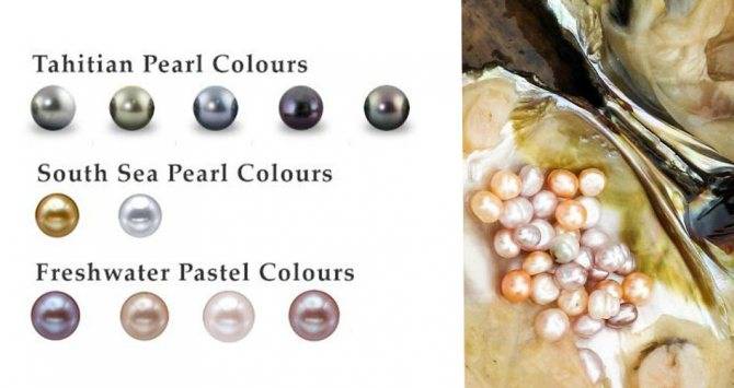 Цветовая гамма пресноводных камней не такая богатая, как у морских. Окончательный цвет зависит от вида устрицы, места ее обитания, химического состава воды или используемых во время выращивания составов.