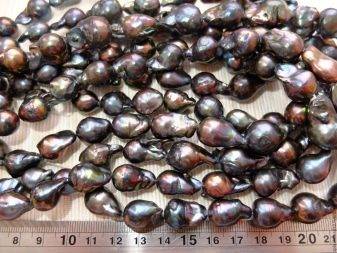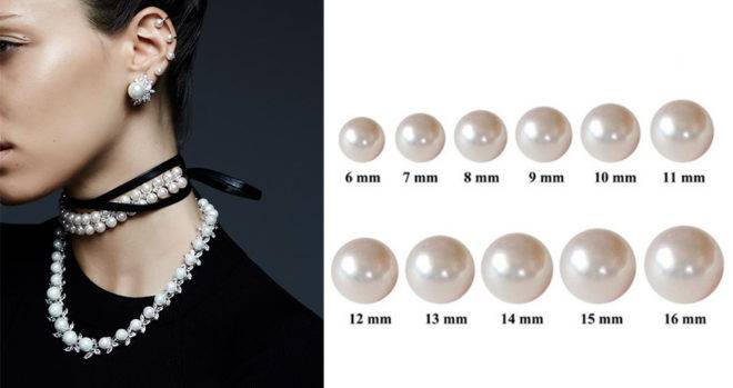 Размер жемчужины зависит от возраста моллюска. Размерный ряд делят на бисер (диаметр бусин 3-5 мм), жемчужную пыль (до 3 мм) и сортовой жемчуг (0,5-1 см).