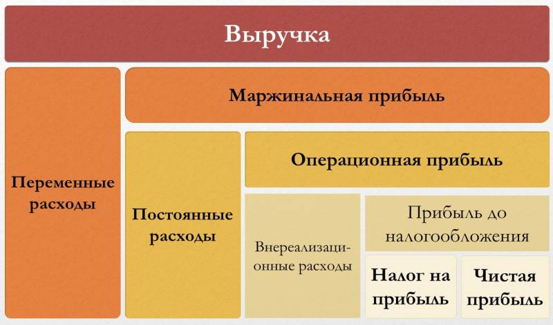 Прибыль рассчитывают, как разницу между выручкой и расходами по разным статьям. В итоге получаются различные виды получаемого дохода: