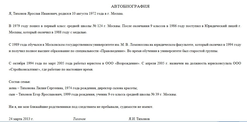 Образец автобиографии на госслужбу практически ничем не отличается от автобиографии для коммерческого предприятия: