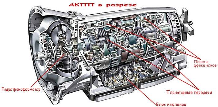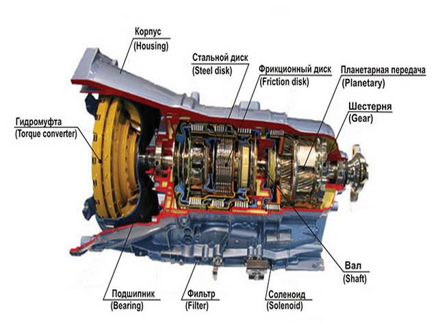 Редуктор автомата состоит из определённого набора шестерёнок и пакетов фрикционных дисков, они находятся в зацеплении и образуют несколько ступеней: 4, 5, 6 и даже 8,9.