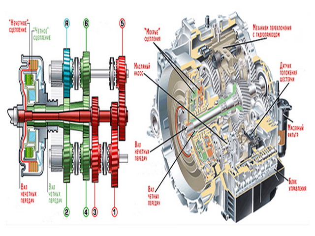 | Конструктивный | Механическая коробка с электронным блоком управления | Гидротрансформатор, планетарная коробка, гидроблок |