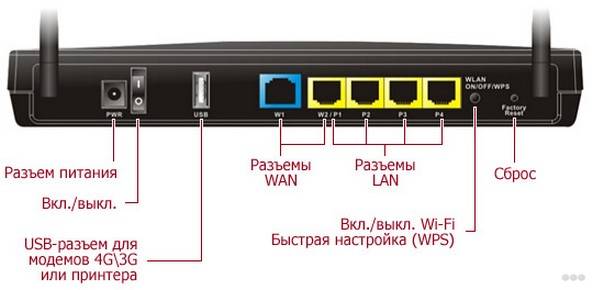 - WAN порт синего цвета вот сюда и подключается провод от провайдера. Грубо говоря сюда и заходят внешние интернет потоки.
