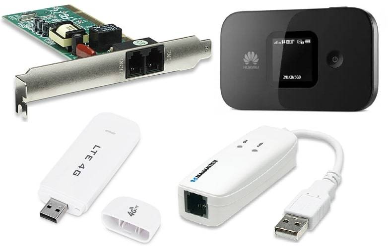 Помимо встроенных модуляторов-демодуляторов, существуют дискретные — в виде отдельных модулей, которые подключаются к внутреннему (например, pci) или наружному (USB, RJ-45) порту ПК иди другого устройства.