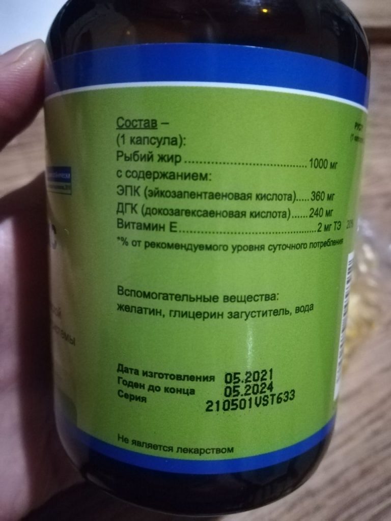 - материал, из которого изготовлены капсулы. Рыбный желатин полезнее.