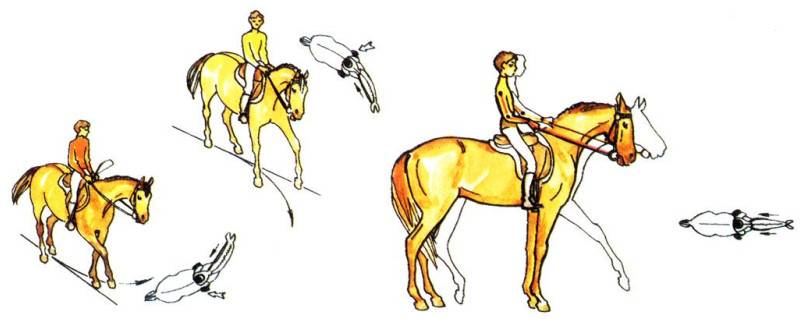 Опытный конь по малейшему движению или нажиму определяет свои последующие действия.